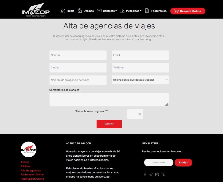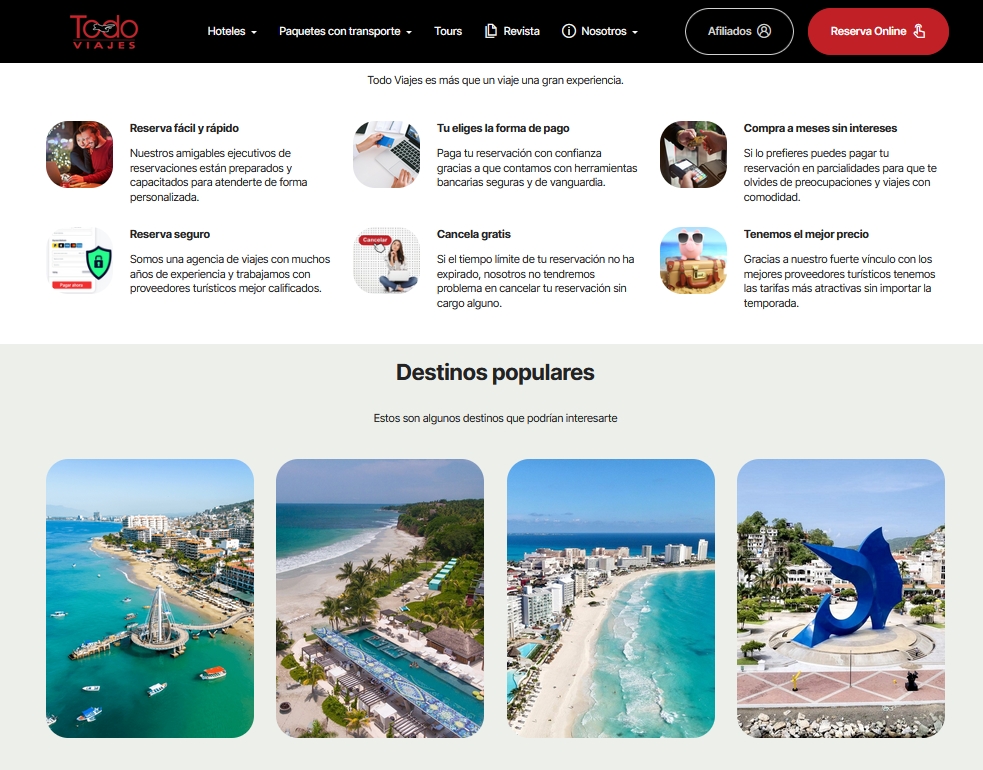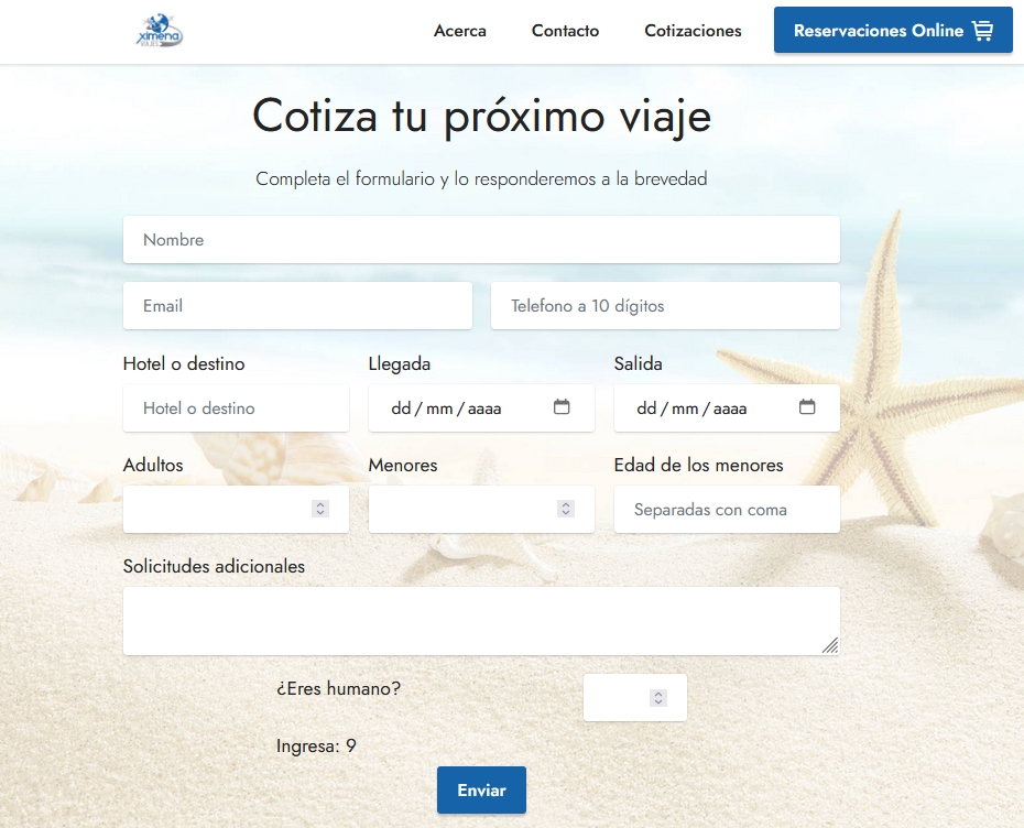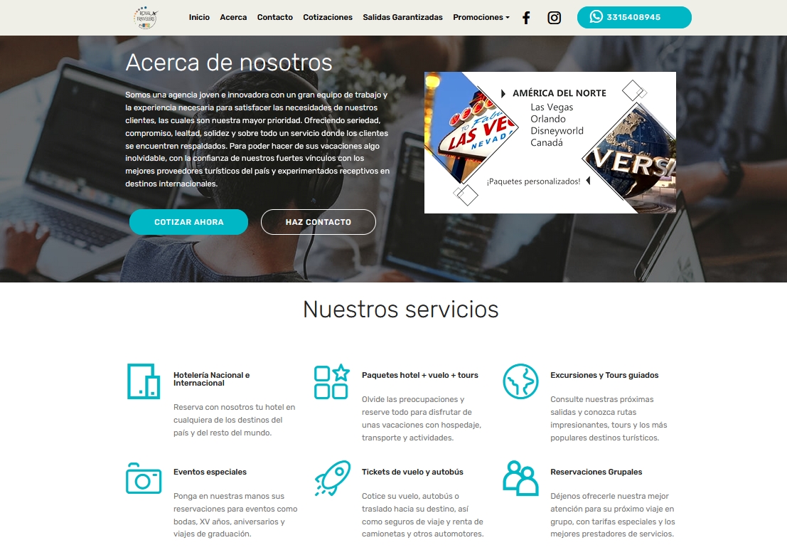 Sitio Web para empresa cuyo giro es de Turismo y Hotelería. Su contenido es dinámico ya que es administrado a través de su propia intranet con base de datos. Incluye motor de búsqueda de tarifas, formularios de cotización y contacto, así como galería de imagenes y secciones especiales categorizadas.